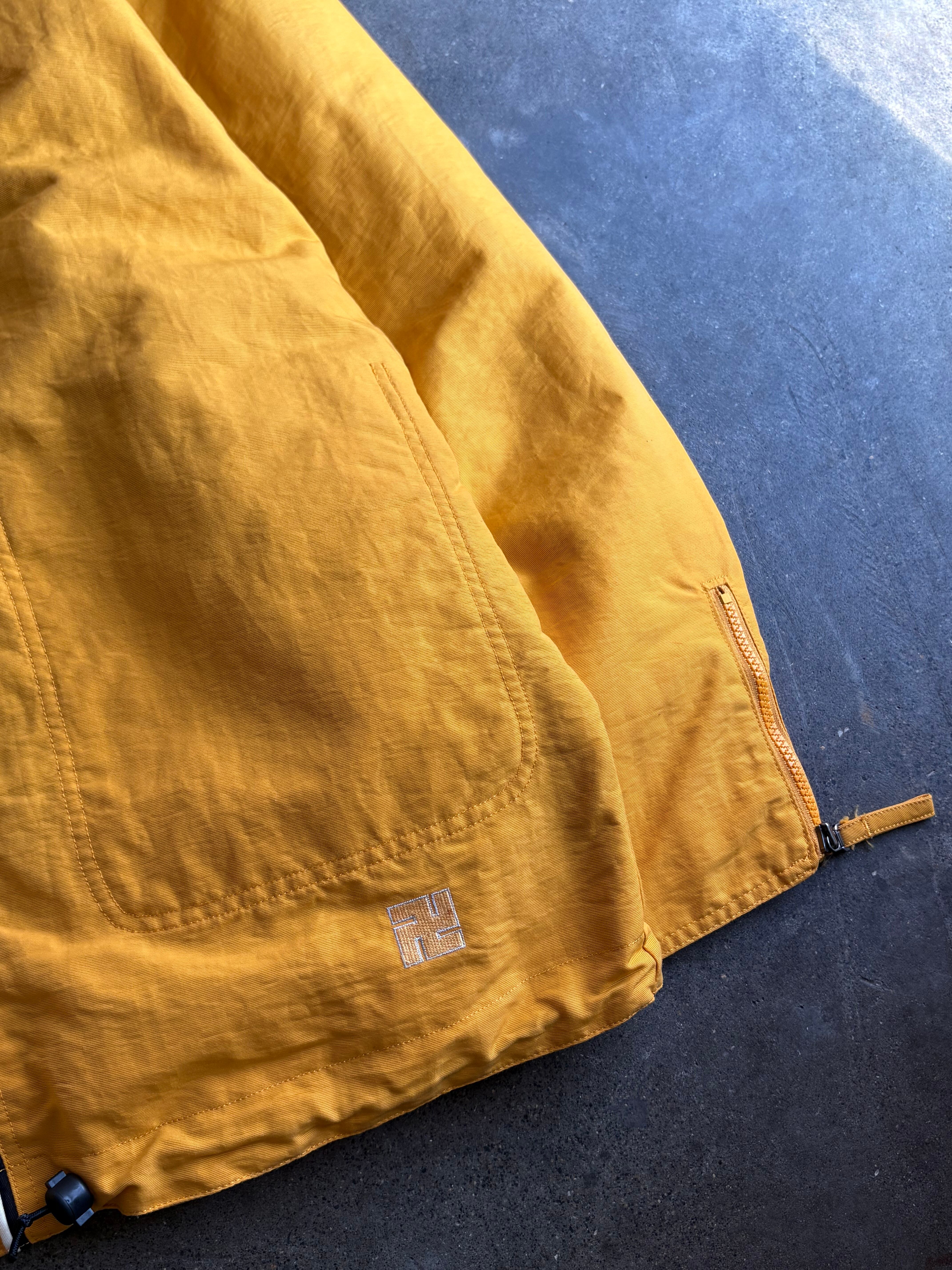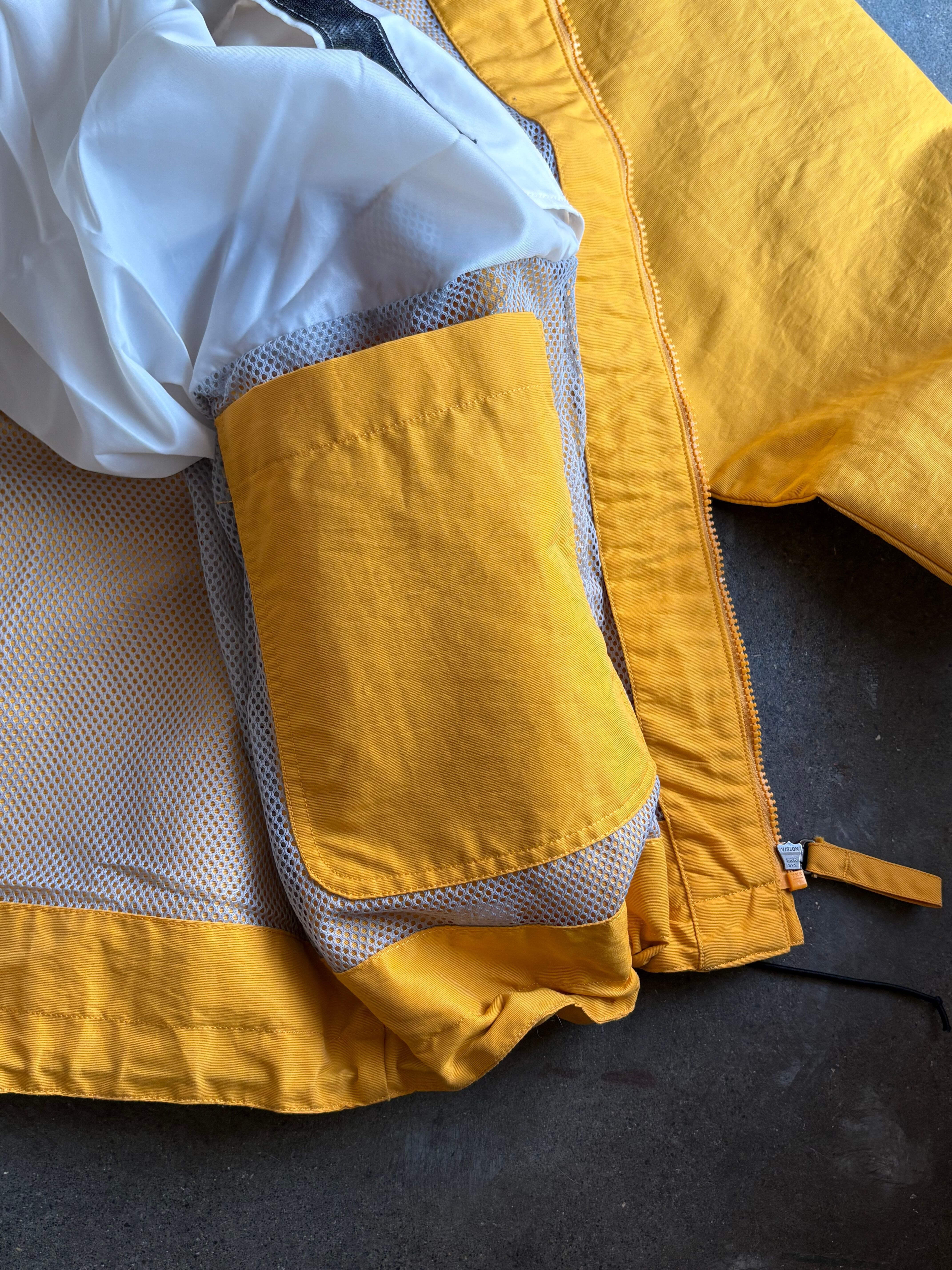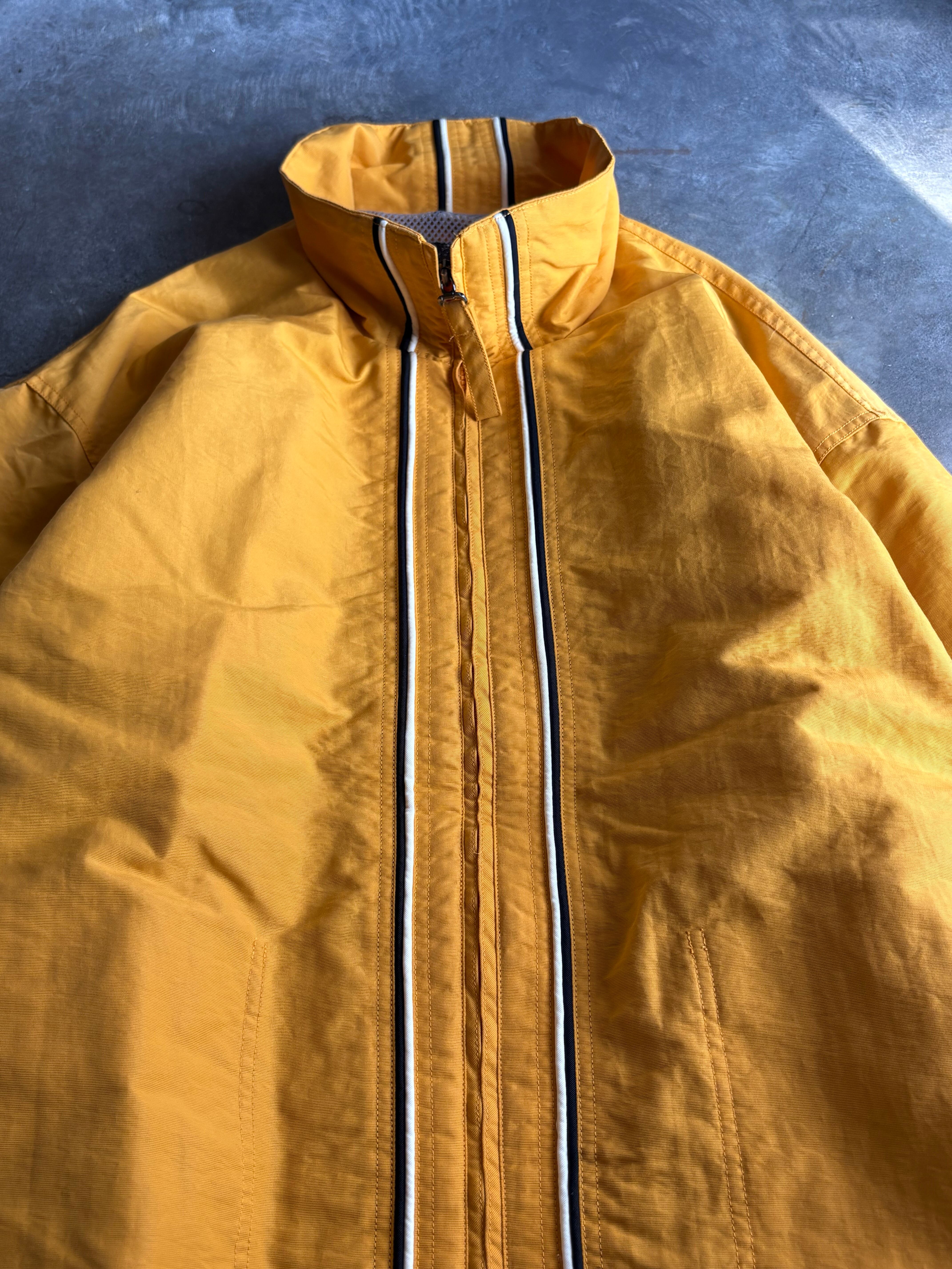 厚手の丈夫なコシのあるナイロン素材を使用したスポーツジャケット