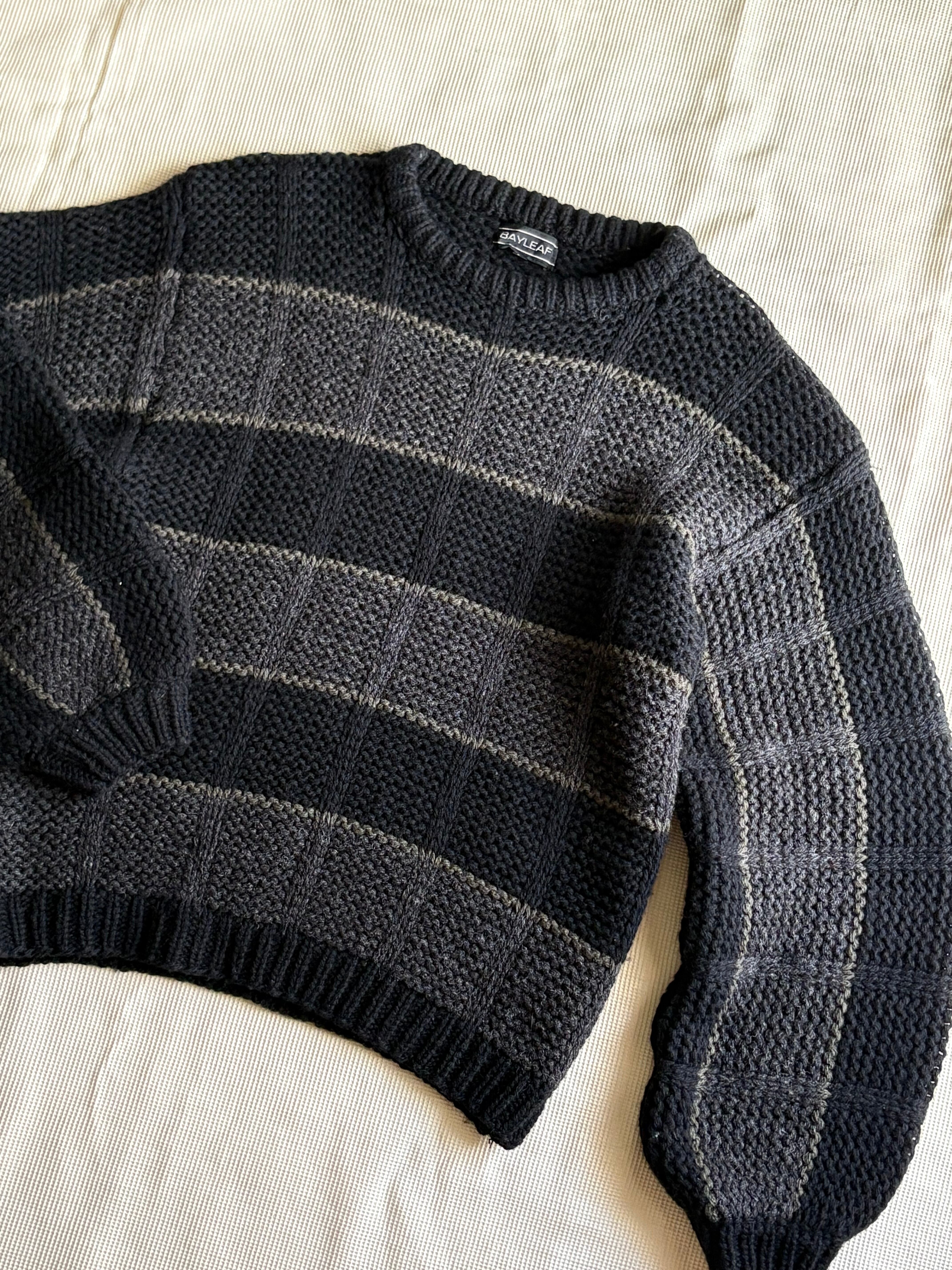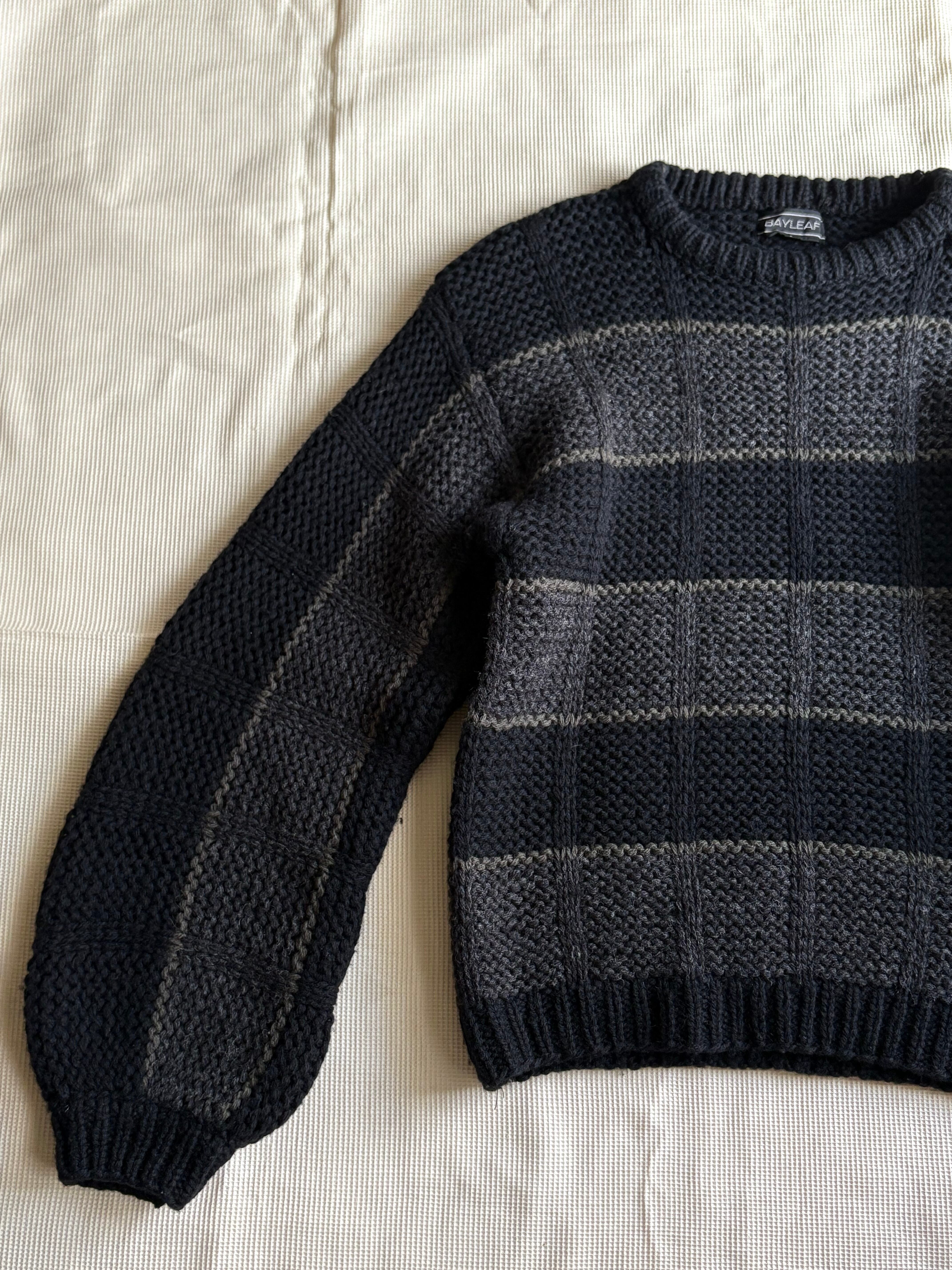 80s border wool knit sweater black grey
