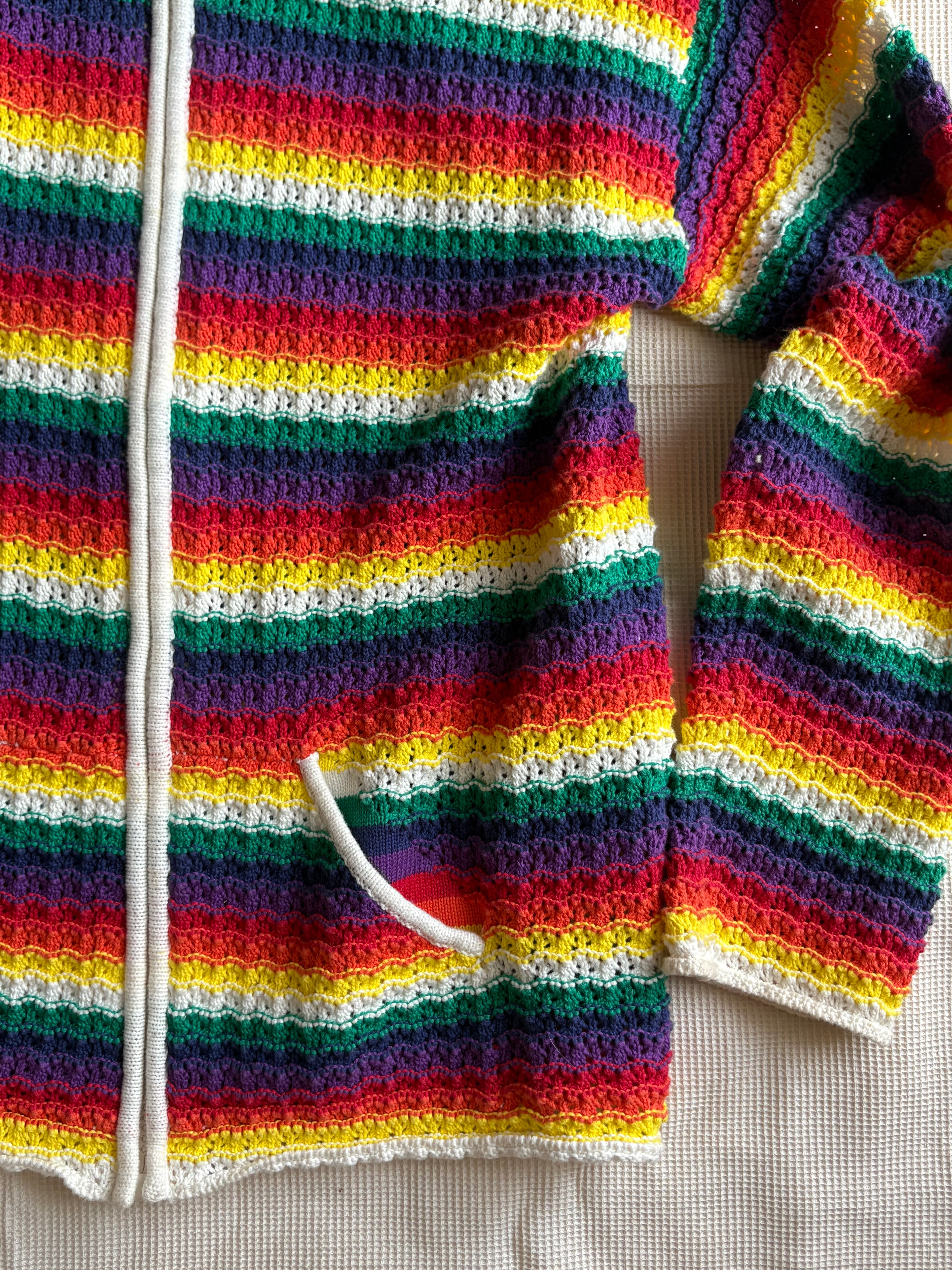 虹色ボーダーで緩いワッフル編み