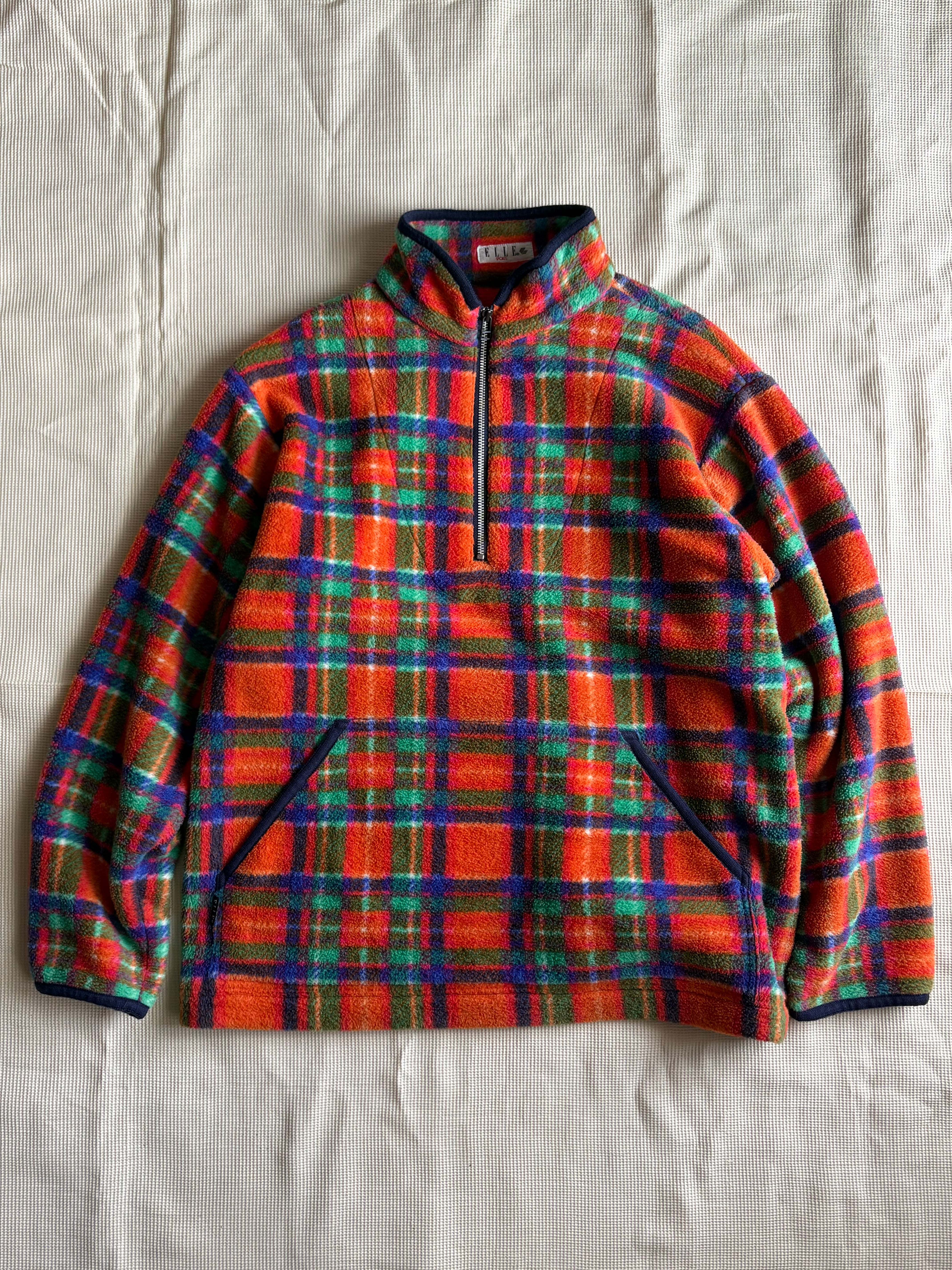 80s elle sport plaid half zip fleece