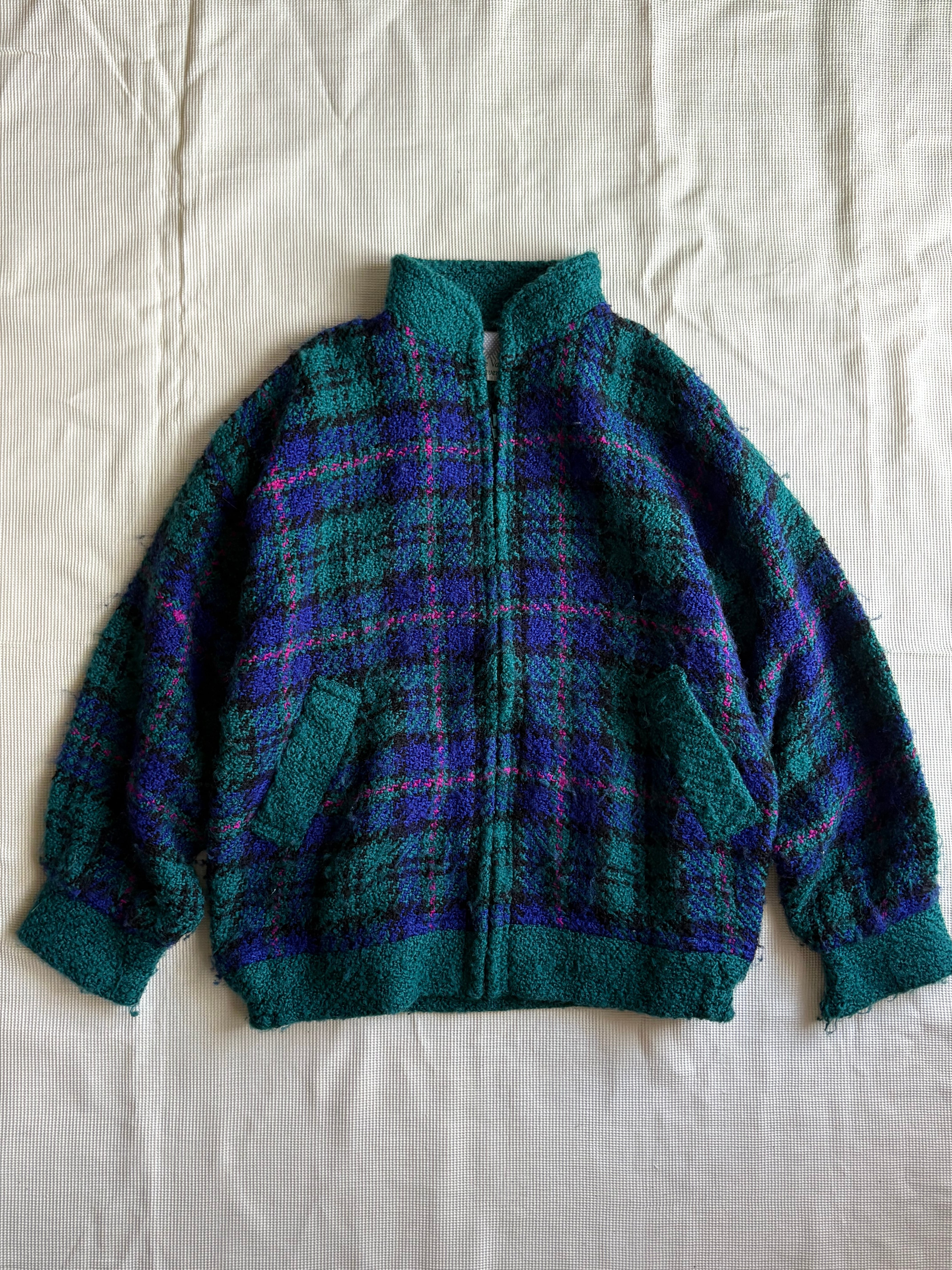 vintage handmade in ireland plaid knit jacket